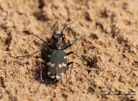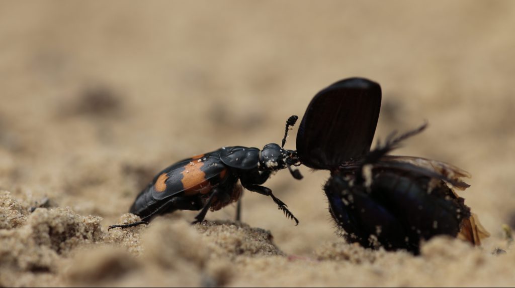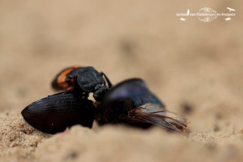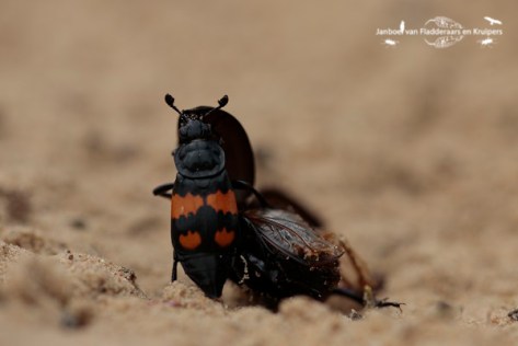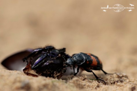 Vandaag ben ik met mijn moeder een dagje naar de Edese Hei geweest. De hei bloeide. Het was er erg druk, maar op een rustig stukje waren veel mestkevers te vinden. Ook veel doden, en wij waren niet de enige die dat zagen. Bij één van de mestkevers zat een doodgraver. Hij zat erg te hannissen met de dode mestkever, maar wat nou zijn doel was is me niet helemaal duidelijk. Wel was het leuk om naar te kijken, en ik heb leuke foto’s kunnen schieten. Bijvangst was de bastaardzandloopkever en op de terugweg bij een zelfoogsttuin op de Wageningse Eng een zwervende heidelibel. Opvallend was dat dit een vers mannetje was. Ik wist niet van zwervende heidelibellen bij Wageningen, en deze moest dus niet gezworven hebben, maar echt van dichtbij komen!