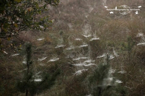 Vandaag ben ik met mijn ouders naar het Rozendaalse heideterrein geweest om gladde slangen te zoeken. Vorige week was het weer niet goed genoeg. Eerdere jaren had ik echter wel succesvolle pogingen (zie hier de laatste, die daarvoor was toen ik nog geen blog had), dus was het toch het proberen wel waard. Het begon heel mistig, wat schitterende spinnenwebben opleverde.