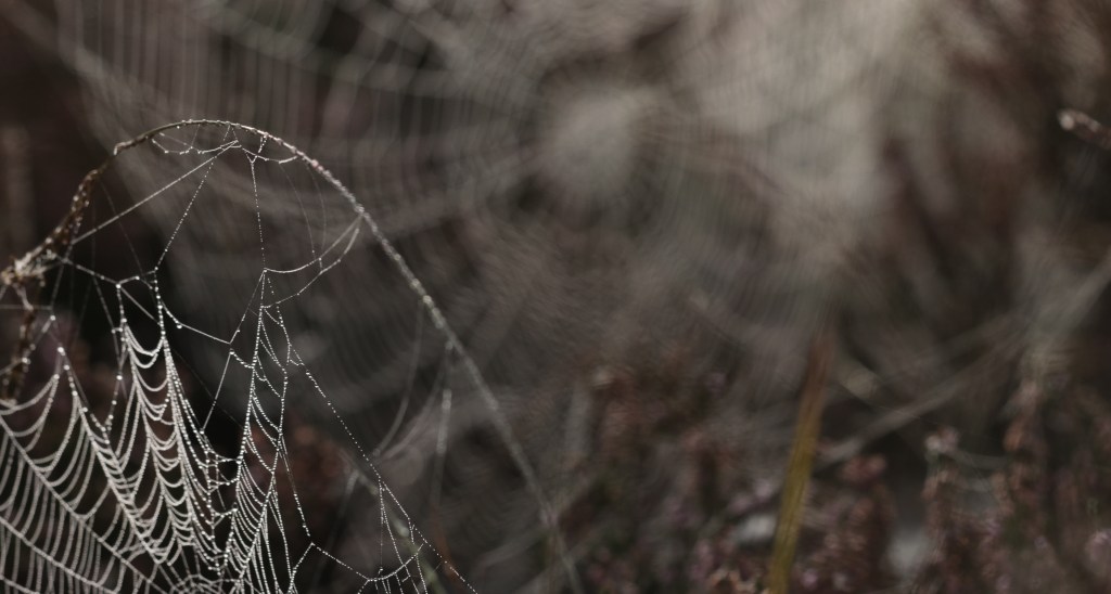 Heel veel spinnenwebben in de mist!Het blijft mooiHangmatjesNog een wielEn nog een stukje wiel