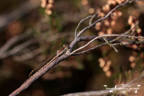 Dat werd uiteindelijk ook het enige waar ik fatsoenlijke foto’s van heb gemaakt deze dag, want verder was de heide behoorlijk saai. Slangen lukten niet. Aan het weer hoefde het niet te liggen, want de mist brak al heel snel waarna het schitterend weer werd. Waarschijnlijk heeft het slechte weer van voorgaande weken de boel verpest. Mogelijk zijn de gladde slangen gewoon twee weken terug al in winterslaap gegaan in plaats van zo rond deze tijd, en was er dus nauwelijks meer een slang te vinden.