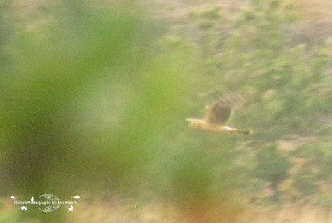 Het was alleen nog niet klaar. De beflijsters waren gevlogen, maar in plaats daarvan was er een klapekster gaan zitten. Ook vloog er een kiekendief over het veld. Mijn camera weigerde echter en stond nog veel te licht afgesteld waardoor een foto van de achter de bomen verdwijnende kiekendief mislukte. Ik moest het met een slechte foto doen, maar het beest had veel weg van een steppekiekendief! Rossig van de onderkant en toch wel behoorlijk slank! Ik vond het niet kloppen met de blauwe, maar door de slechte foto te moeilijk te beoordelen om er een zekere steppekiekendief van te maken. Ik zal nog wel te horen krijgen op waarneming.nl of het klopt of niet.