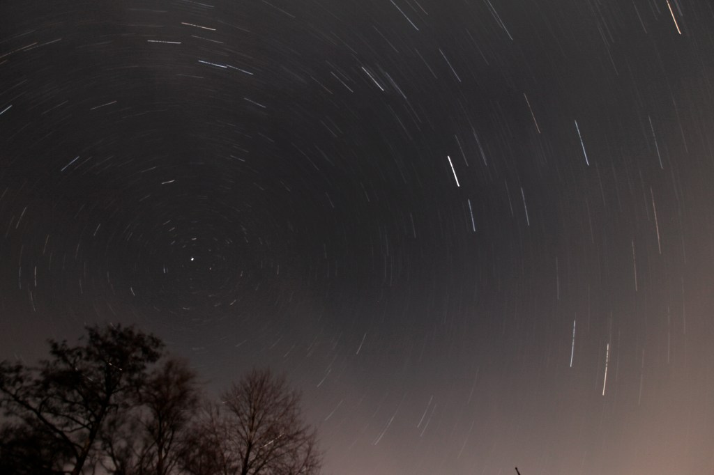Ik heb totaal drie foto’s gemaakt. Allemaal met een sluitertijd van 30 minuten, zodat je de draaiing van de aarde goed kunt zien. De eerste twee zijn niet goed gelukt (een bewogen en een onscherp), maar de laatste kan ik best tevreden over zijn.