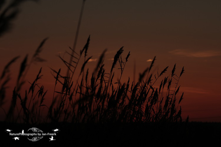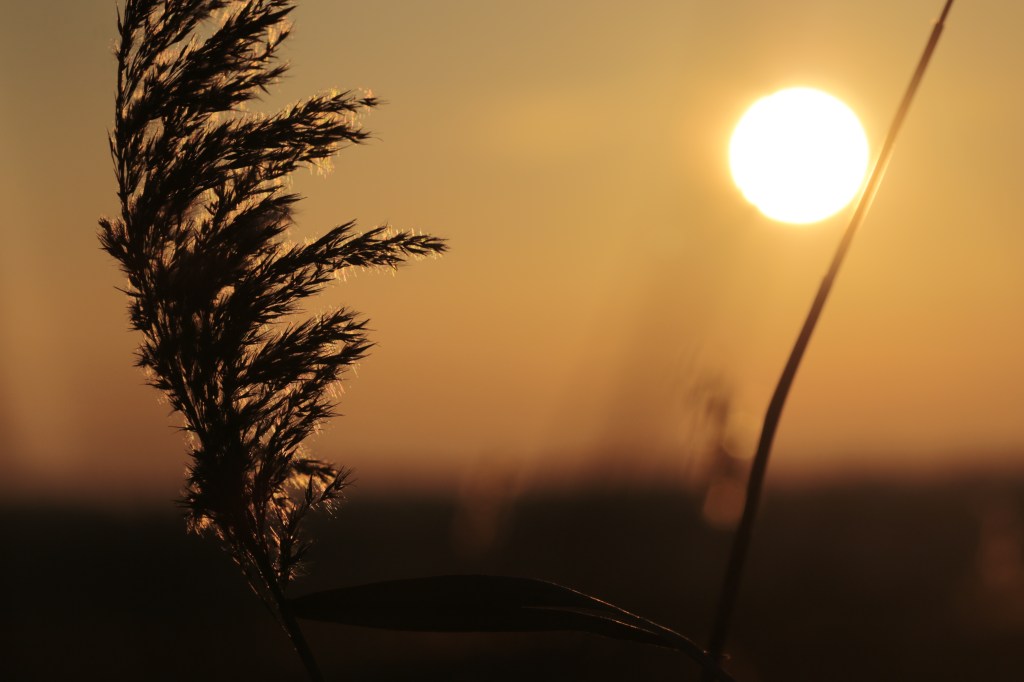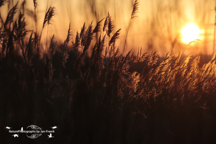 Mooie laagstaande zon met wat riet ervoor!