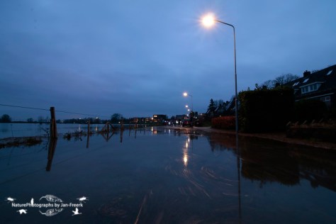 Vorige week woensdag heeft het hoog water in Wageningen zijn hoogste punt bereikt en is inmiddels weer een flink eind gezakt. Die woensdag ben ik gewapend met mijn groothoeklens en statief in het donker, eerder was ik niet vrij, naar de ondergelopen veerweg gegaan om met lange sluitertijden (de meeste foto’s met 30 sec sluitertijd) aan de slag te gaan. Hier zijn alsnog (een beetje vertraagd) de plaatjes!