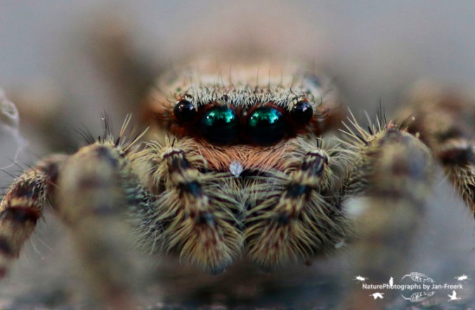 De afgelopen dagen hebben we heel wat ijspret gehad. Vanaf vorige week vrijdag zat ik met een aantal klasgenoten in een vakantiehuisje van één van die klasgenoten in Maarn. Het Henschotermeer was helaas nog niet in een schaatsbaan veranderd, maar het was wel gezellig. Het enige wat ik daar nog heb gefotografeerd is een spinnetje dat we in het huisje vonden.