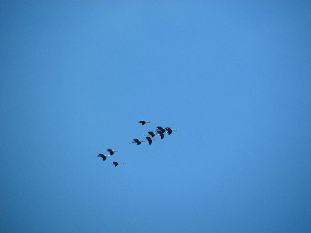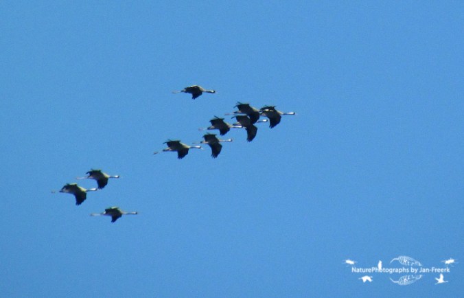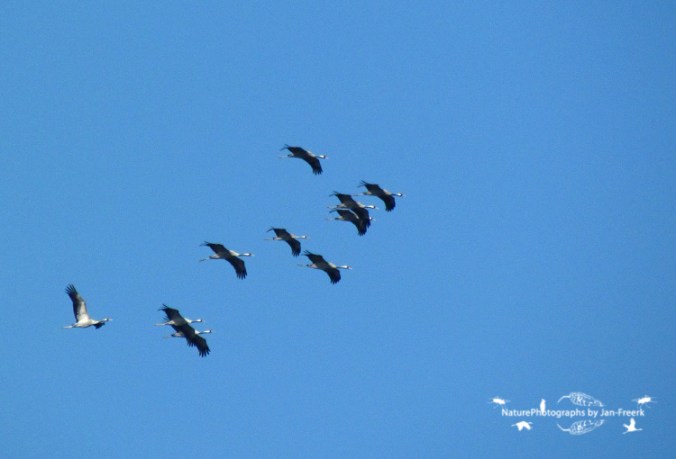 Zoals verwacht kwamen er gisteren écht veel kraanvogels over ons land. Zuid-Limburg is in de hoofdprijs gevallen, met heeeeel veel groepen. Wat opvalt is dat de groepen over het algemeen ook heel groot zijn. In Limburg zijn meerdere groepen van duizenden gezien. Ook in Winterswijk kwam een groep van maar liefst 5000(!) kraanvogels overvliegen! Wat moet dat fantastisch zijn om zo’n lucht vol met kraanvogels te zien overvliegen! Ik moet zeggen dat wij ook al heel tevreden mogen zijn met een groep van 119 dieren zaterdagavond, en gisteren zag ik in Zeist bij de Burgemeester Patijnlaan een klein groepje van 10 kraanvogels overvliegen. Ik ontdekte ze al heel ver van tevoren, waardoor ik alle tijd had om mijn camera te pakken en goed te zetten, voor ze van dichtbij met het licht mee langs kwamen vliegen!