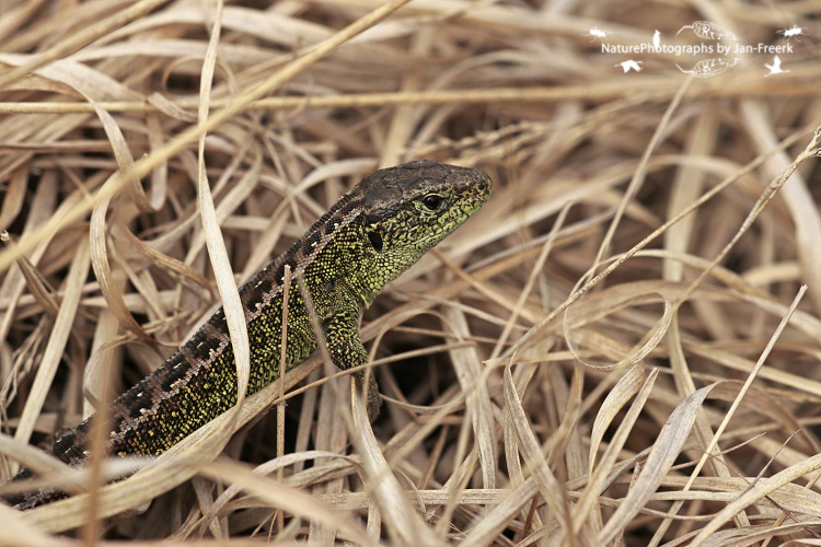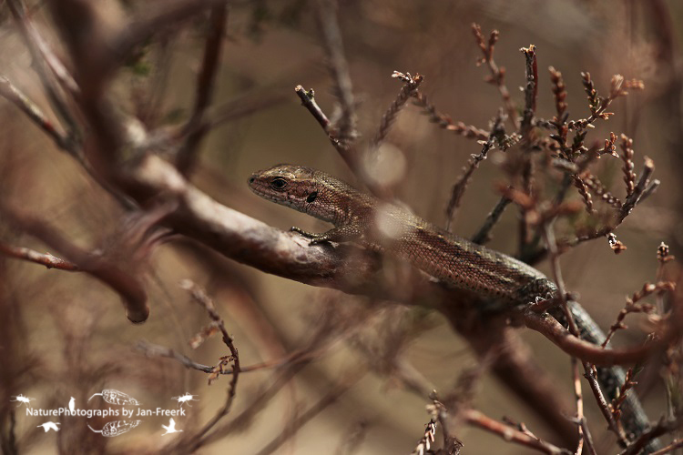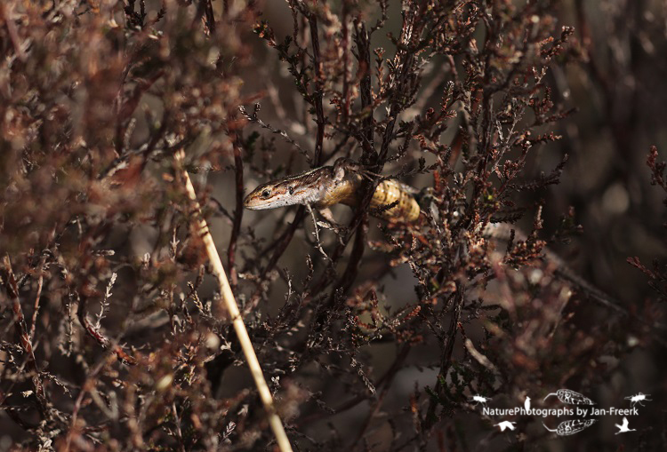 We begonnen bij Steenberg (Kootwijk). Er waren veel hagedisjes, zowel zandhagedissen als levendbarende hagedissen. De adder heb ik gemist ondanks dat ik er min of meer naast stond, maar ze was te snel. Iemand anders zag haar nog wegschieten. Onder een reptielenmatje vonden we nog een hazelworm en toen iemand een stam omkeerde lag daar een gewei van een vliegend hert onder! Twee levendbarende hagedissen kon ik prachtig in de heidestruikjes zien klimmen, wat er altijd erg schattig uitziet.