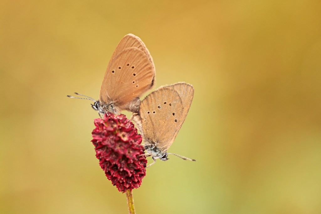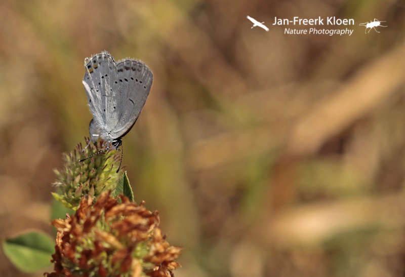 Op zondag ging ik weer mee naar Posterholt. Bij de wegberm waren al minder donkere pimpernelblauwtjes te zien, het was het einde van het seizoen. Bij een natuurgrasland in de buurt troffen we nog meer donkere pimpernelblauwtjes aan die zich wel mooi lieten fotograferen, en zelfs een paartje dat een uur lang op dezelfde bloem bleef zitten ondanks de vele NJN’ers! Hier zagen we ook een gele luzernevlinder en wat staartblauwtjes.