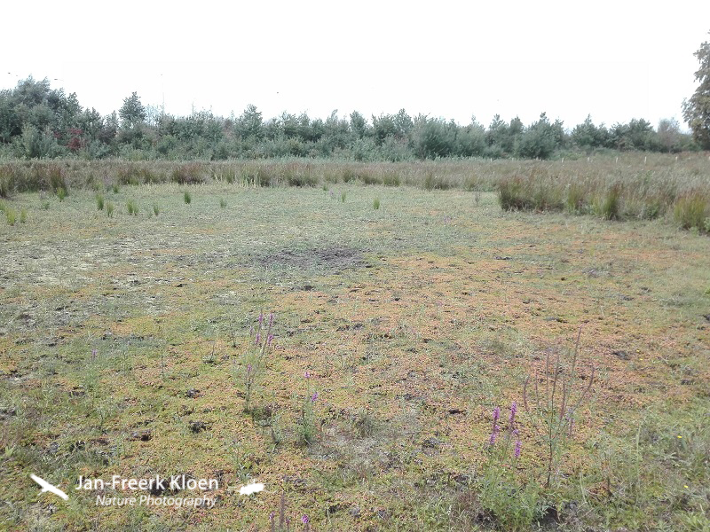 De eerste plas die ik tegenkwam was volledig opgedroogd. Het stond wel propvol met een zeer zeldzaam plantje dat op oevers of opgedroogde plassen groeit: het waterlepeltje.