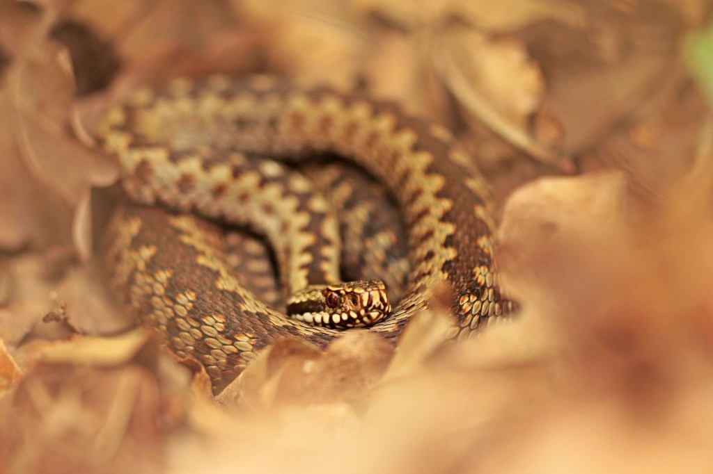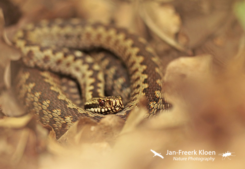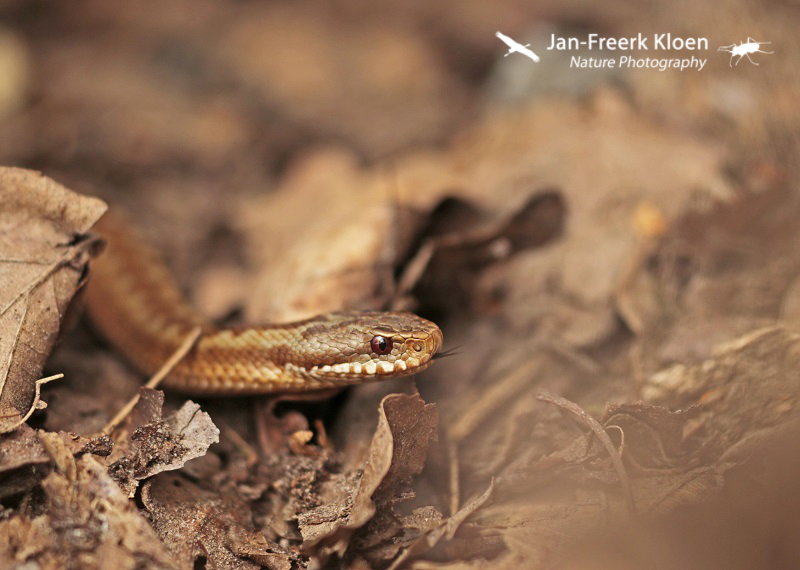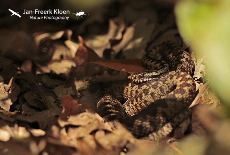 Ook die onopvallende levenswijze had ik vandaag mee te maken. Ik heb heel hard lopen zoeken met redelijk goed weer en niks kunnen vinden. Gelukkig werd die tegenvaller goed opgevangen door een paar levendbarende hagedissen en maar liefst vijf adders waarvan er twee wel heel goed meewerkten voor de foto!