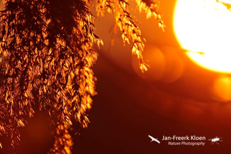 Rietpluim in het zonlicht, een paar minuten voor zonsondergang