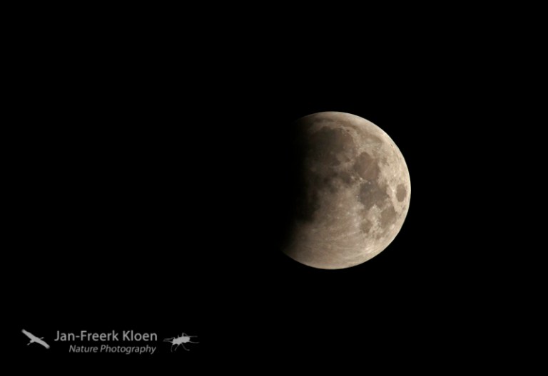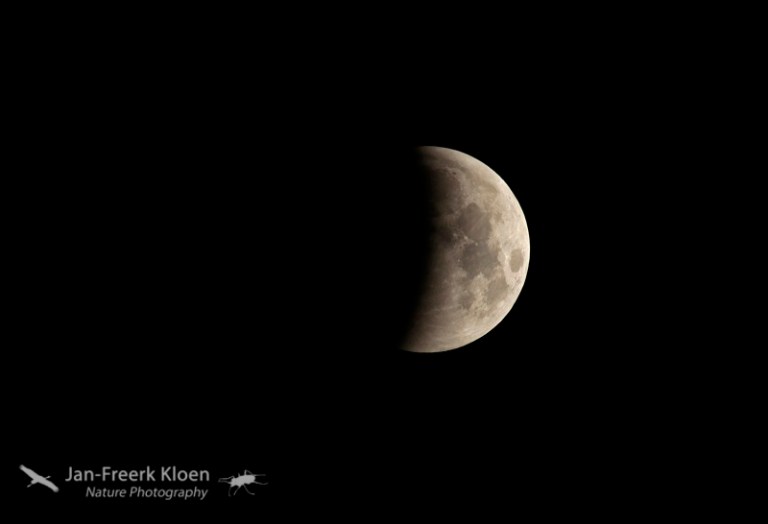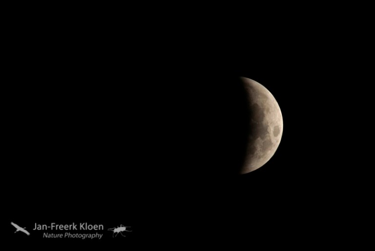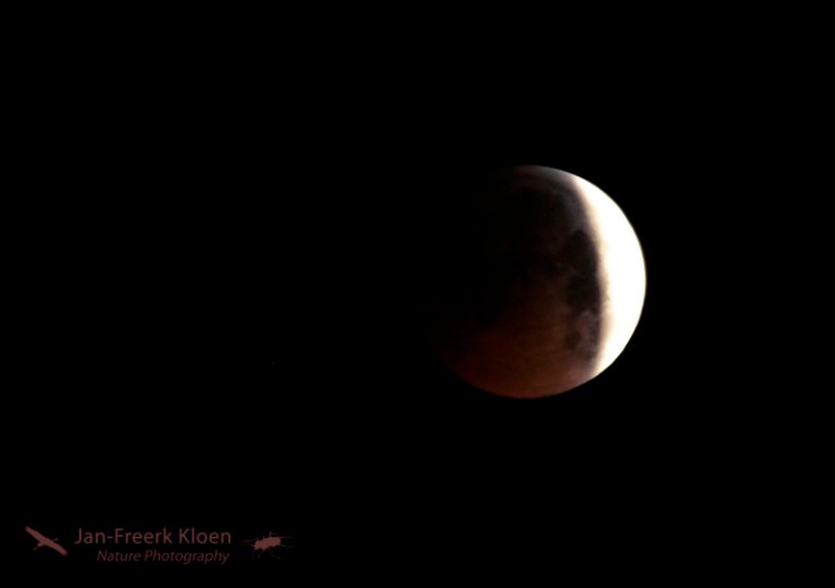Om 4:00 ging mijn wekker. Het alleruiterste begin had ik gemist, maar ik vond 4:00 uur wel vroeg genoeg. Ter vergelijking had ik de avond van tevoren van de volle maan gemaakt. De bloedmaan was erg mooi te zien in het Binnenveld bij Wageningen, waar het ook goed koud was…