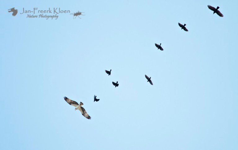 Het kamp werd voor mij de volgende ochtend leuk afgesloten: op weg naar de trein vloog er een visarend vlak over me heen die geëscorteerd werd door twee handen vol kauwen en een roek.