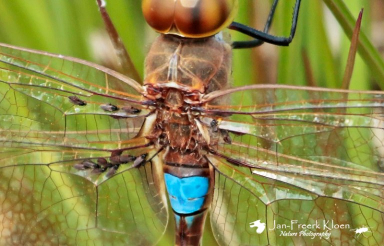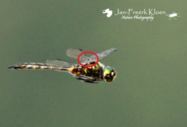 Met een beetje moeite is er een libellenknutje te zien op de rechter voorvleugel…