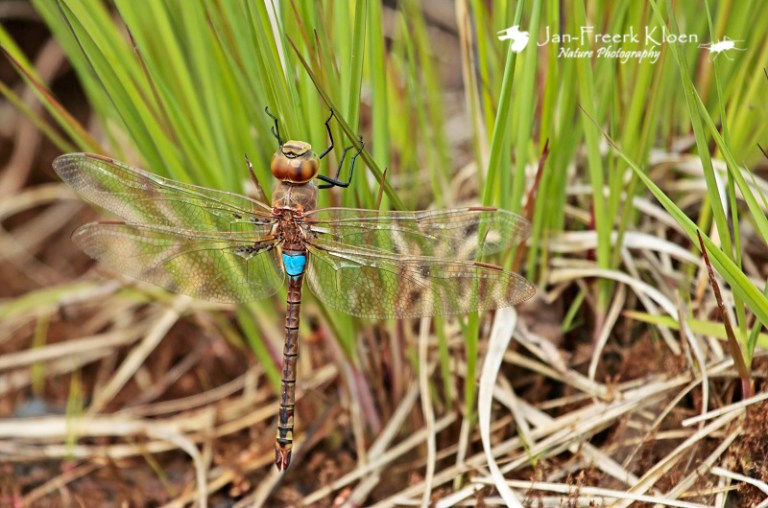 Zuidelijke keizerlibel, man. Zoek de verschillen met de zadellibel!