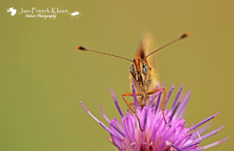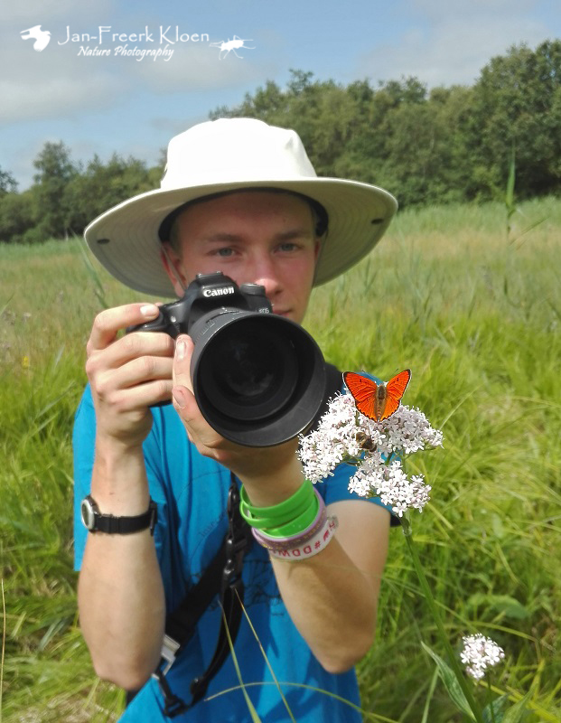 De grote vuurvlinder liet zich erg goed fotograferen, ook met mij erbij!
