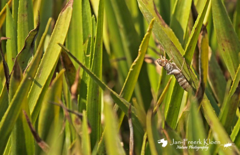 Daarna hebben we nog een hele tijd bij krabbenscheervelden naar larven en larvenhuidjes van de groene glazenmaker gezocht – en gevonden.