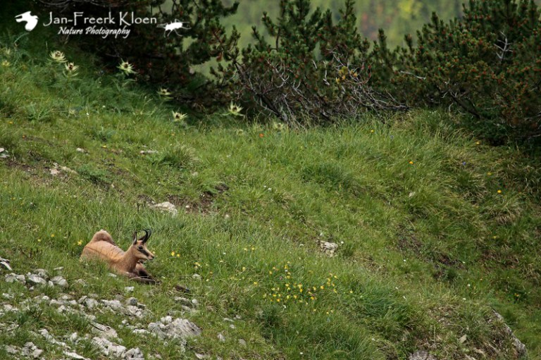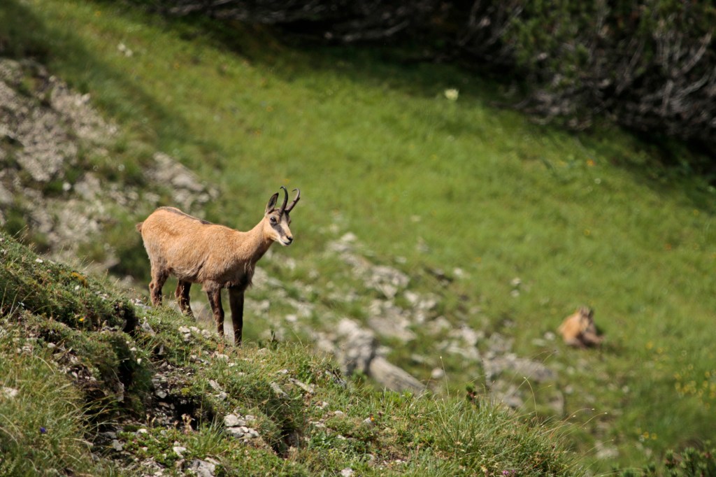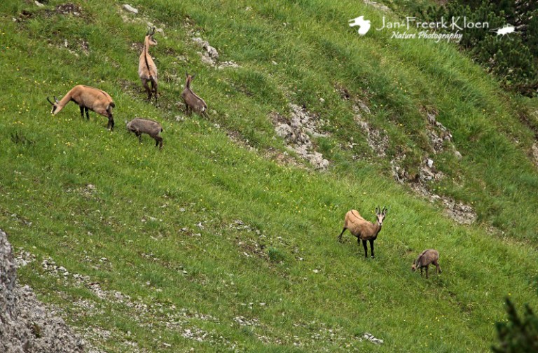 Bovenop de top zagen we onder ons verschillende gemzen lopen, waaronder ook moeders met jongen. Op de terugweg naar beneden zagen we ze zelfs van heel dichtbij, ze leken niet al te schuw.