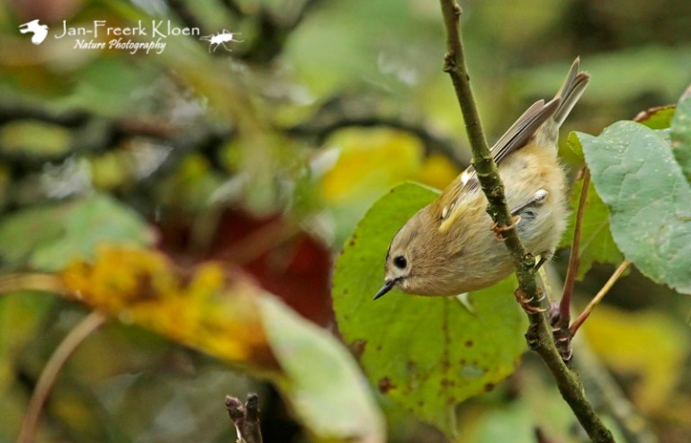 Vrolijk of niet, een uitdaging om ze op de foto te krijgen is het zeker! Een goudhaantje kan nog geen seconde achter elkaar stilzitten. Het is alsof ze zeer ernstige ADHD hebben en aan één stuk door stuiteren. Slapen die beesten ooit? Een andere moeilijkheid is uiteraard de grote hoeveelheid takjes en blaadjes in een boom. En doordat die goudhaantjes zo klein zijn kunnen ze zich daar nogal makkelijk in verschuilen. Anderhalf uur later had ik een aantal leuke goudhaanplaatjes.