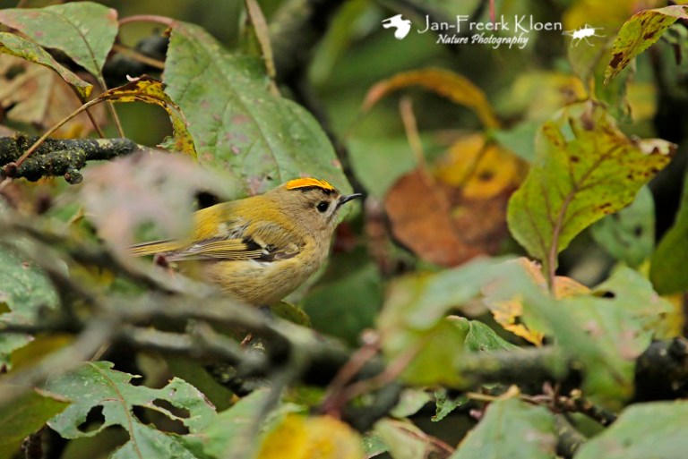 In plaats daarvan bleef ik bij een grote groep goudhaantjes staan. Ze zaten lekker in de bosjes naar kleine beestjes te zoeken, en kwamen ook regelmatig erg dichtbij. Goudhaantjes zijn erg leuk om naar te kijken. Ze zijn piepklein, hebben vrolijke lichte streepjes op de vleugels en een stralend knalgeel – gouden – kruintje. Vandaar de naam.