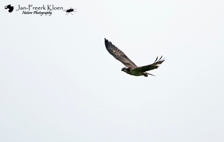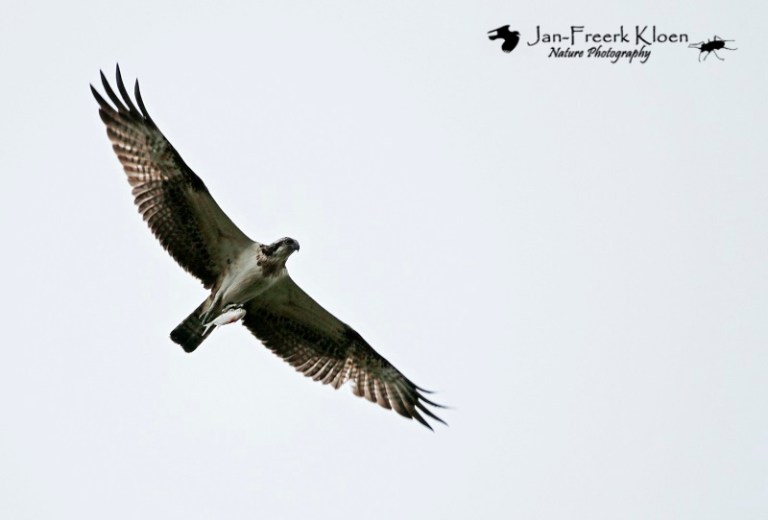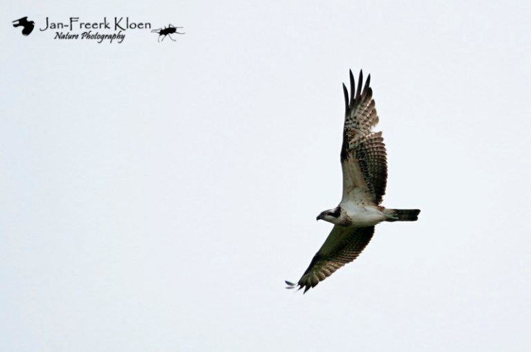 Als klapper op deze dag vloog er tot vier keer toe een visarend over mijn hoofd. De foto’s zijn niet héél goed door het grauwe weer, maar dichtbij was hij zeker en erg mooi te zien!