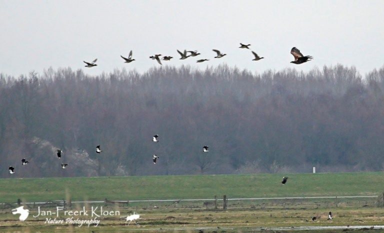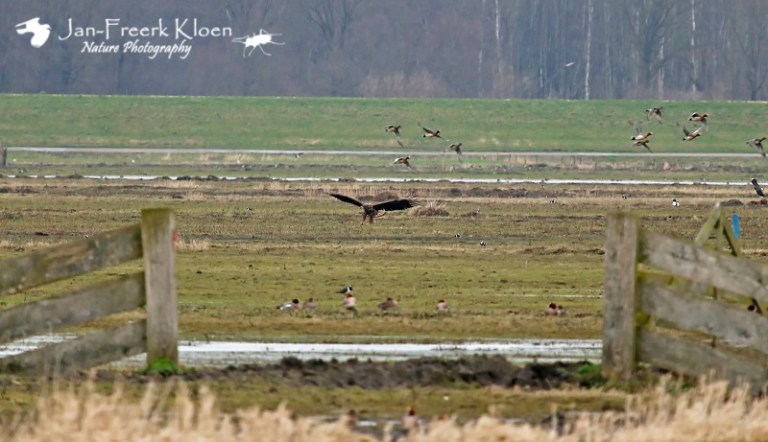 Na het bezoek aan de velduilen gingen we nog in Arkemheen rondkijken, wat leuke foto’s van leuke vogels opleverde. Een torenvalk liet zich leuk van dichtbij zien en er liep een kemphaan erg dichtbij de weg. Op grotere afstand zagen we goudplevieren, bonte strandlopers en er vlogen twee slechtvalken tussen grote groepen vogels rond. Een jonge zeearend die de boel kwam verstoren zorgde voor het slotakkoord.