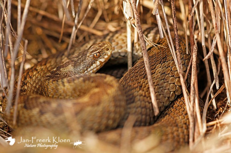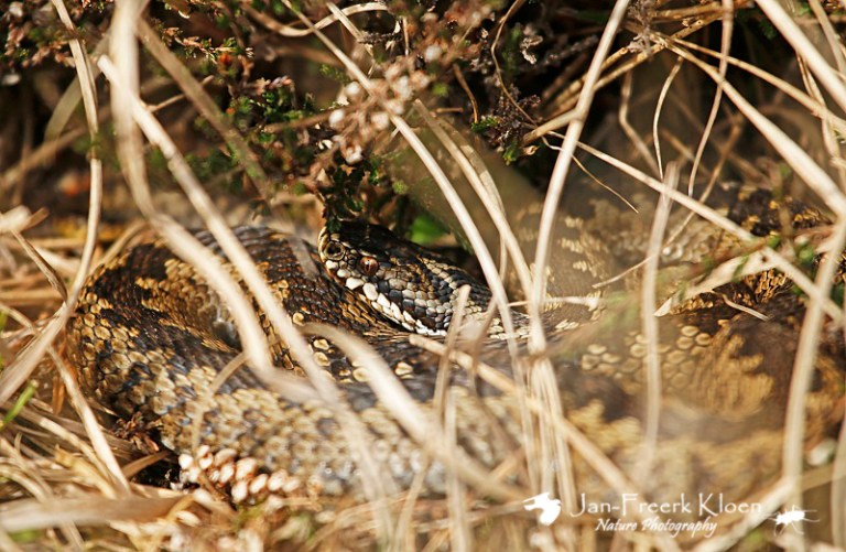Gisteren ben ik in de buurt op de heide naar adders wezen zoeken. En met succes. Ik vond er vier, die zich prachtig en uitgebreid lieten fotograferen. Eén van de dieren was een jong van vorig jaar. Ik ben blij dat die er ondanks alle droogte ook nog zijn en ook gezond de winter in en uit gekomen zijn. Daarnaast waren een paar zandhagedissen en een hazelworm al actief. De komende weken zal dat nog veel meer worden.