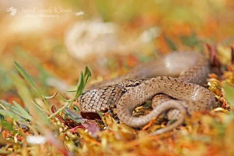 Normaal gesproken is het absoluut niet de bedoeling dat slangen gevangen worden. Dit kan veel stress veroorzaken, nog los van dat slangen kunnen bijten om zichzelf te verdedigen. Alle slangensoorten in Nederland zijn bovendien beschermde diersoorten die niet verstoord mogen worden. Ik ben zelf ook erg terughoudend met het vangen van slangen. Omdat ik zelf in een ander gebied ook als vrijwilliger van Ravon loop weet ik hoe ik met slangen om moet gaan. De slangenonderzoekers waren nog in de buurt en dan is het de moeite om de gladde slang te vangen, op te meten, te wegen en de kop te fotograferen, waaraan ze individueel te herkennen zijn. De betreffende gladde slang is een jong van vorig jaar, amper twintig centimeter lang. Hij is superdun en weegt ongeveer drie gram.