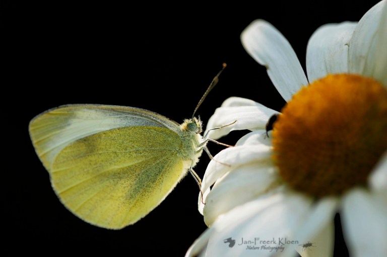 Sinds een maand hebben we een nieuwe bezoeker in de tuin. Een maand geleden ontdekte ik hem voor het eerst, inmiddels zijn er al meerdere exemplaren langsgekomen. Het gaat hier om een koolwitje. Maar niet het gewone koolwitje (klein koolwitje), maar zijn zeldzame dubbelganger: het scheefbloemwitje!