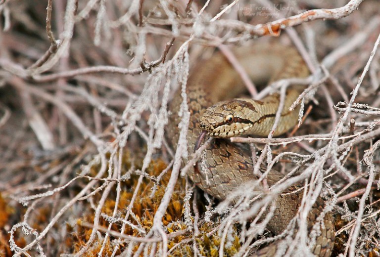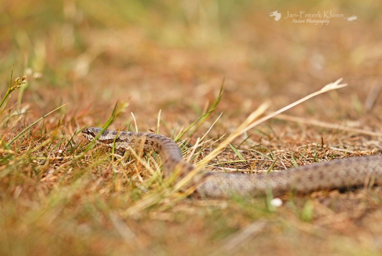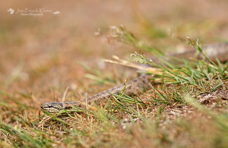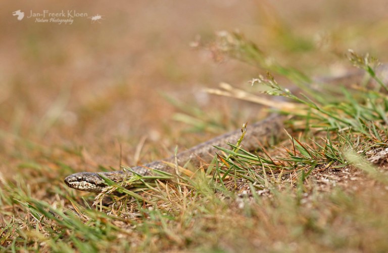 Afgelopen weekend ben ik met twee anderen in een ander gebied geweest. Het weer was perfect, behalve dat er erg veel wind stond. Dat maakte dat het er lang op leek dat het een nultelling zou worden. Maar, zo zeg ik heel vaak, het kan tot de laatste meter. En zo was het. Vlak voor de uitgang van het gebied ontdekte ik een prachtige gladde slang. Dag weer goed.