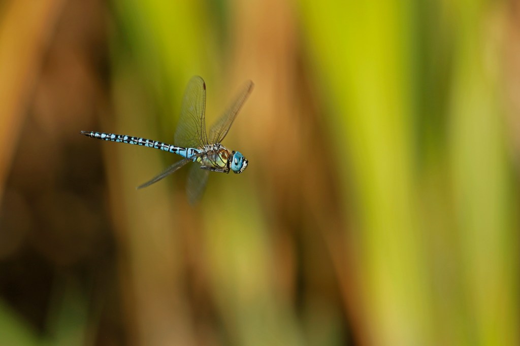 Bovendien lieten ze zich prachtig bekijken. Tenzij een soortgenoot kwam stoeien, vlogen ze rustig en laag boven de grond vlak om me heen. Ik heb twee uur zitten kijken naar één mannetje dat constant vlak voor mijn neus zijn rondjes vloog. Soms een uitstapje naar een buurman of om een vliegje te verschalken, maar altijd zo snel mogelijk weer terug om zijn eigen vaste rondje in de gaten te houden.