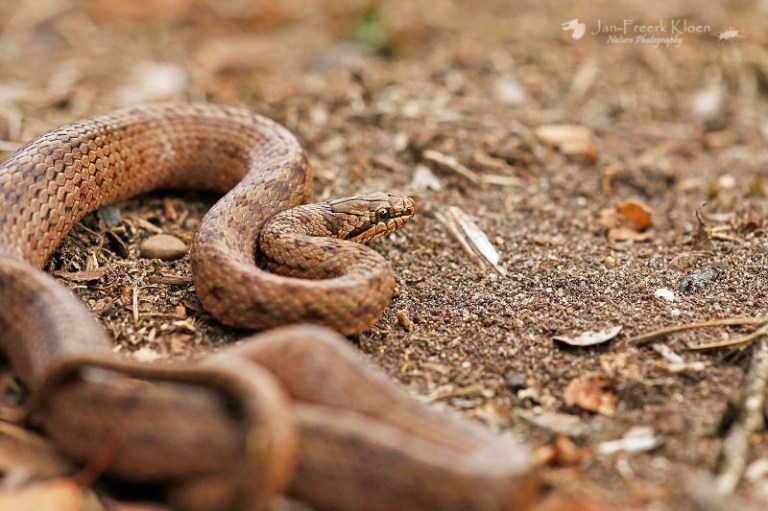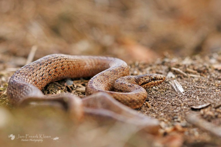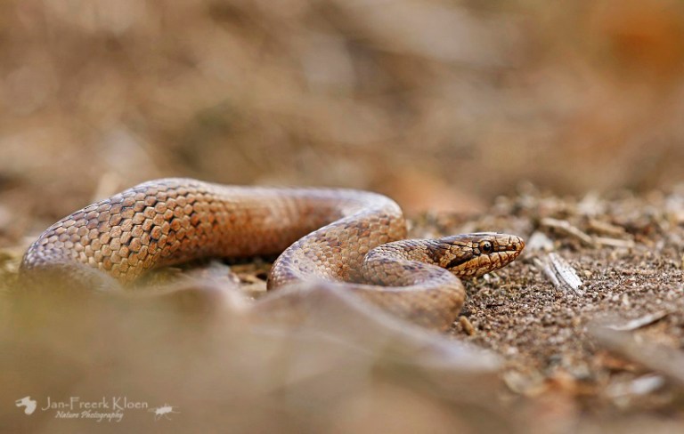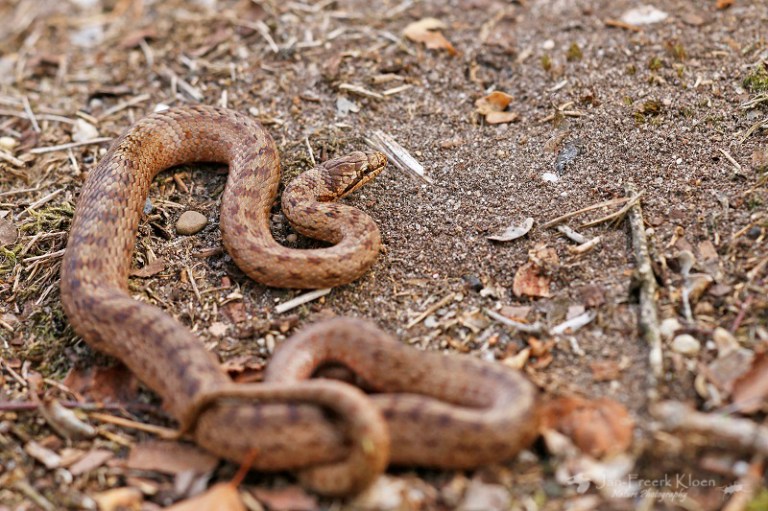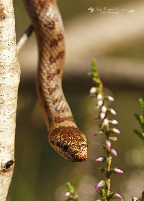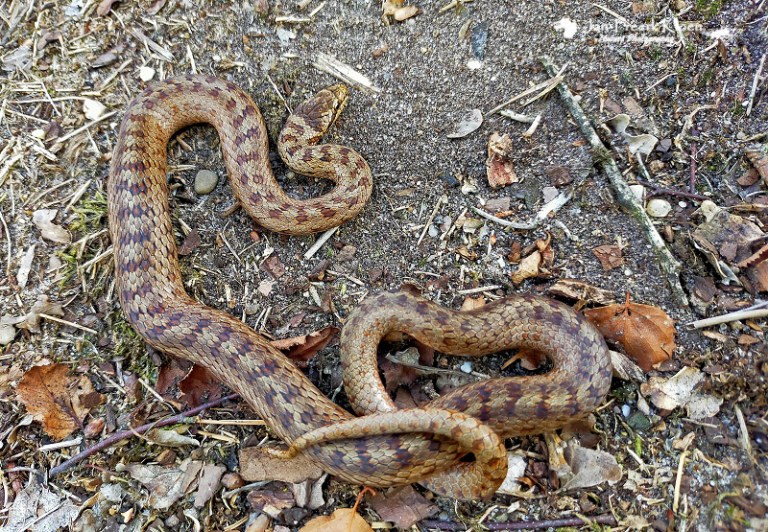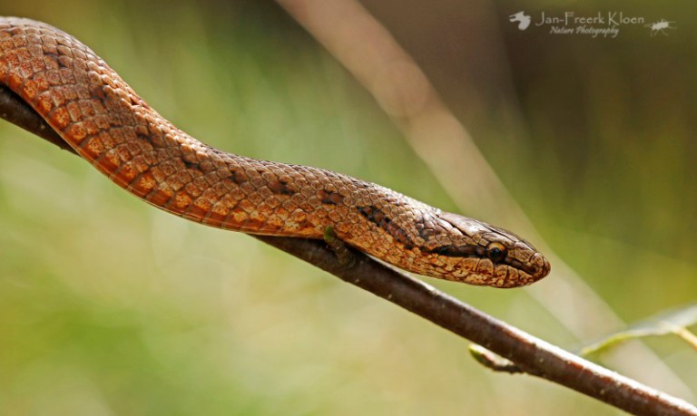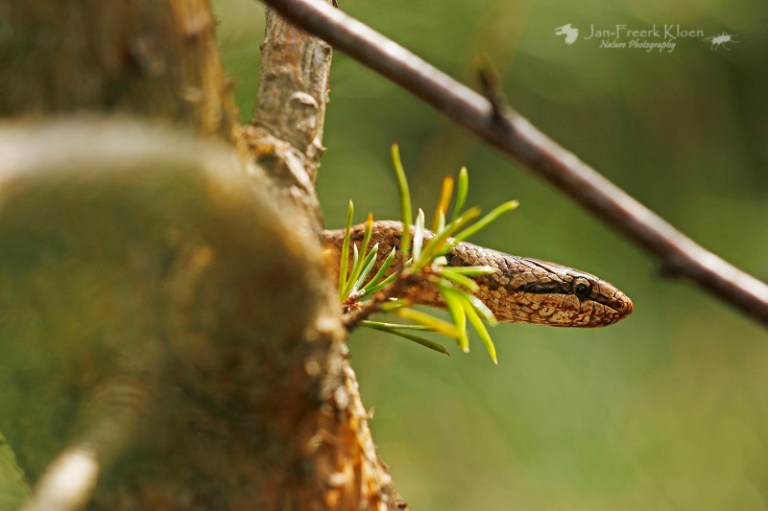 Vandaag ben ik het veld in geweest op de Veluwe om reptielen te tellen. Een vliegende start hadden we niet, maar uiteindelijk hadden we in beide gebieden een redelijke score. Voor wat tegenwoordig nog redelijk was. Op het allerlaatst ging ik in de wegberm in het eerste gebied nog bijna op een gladde slang staan, dé topper van de dag. Ze liet zich van alle kanten prachtig bekijken. Dat gladde slangen uitstekend kunnen klimmen wilde ze ook nog wel even laten zien. Voor de Canadees die we tegenkwamen kon de dag niet meer kapot. Hij was op zoek naar slangen met zijn Nederlandse vriend, maar zonder ons had hij een wat minder mooie dag gehad. De eindscore van het eerste gebied was vijftien zandhagedissen, een levendbarende hagedis, een gladde slang en een huidje van een gladde slang. In het tweede gebied, waar we de twee jongens ook op sleeptouw hadden genomen, zagen we vijf zandhagedissen en een hazelworm. De aantallen waren niet wereldschokkend, maar toch heel wat beter dan wat we vorig jaar gemiddeld zagen. En natuurlijk de topper van een pracht van een gladde slang!