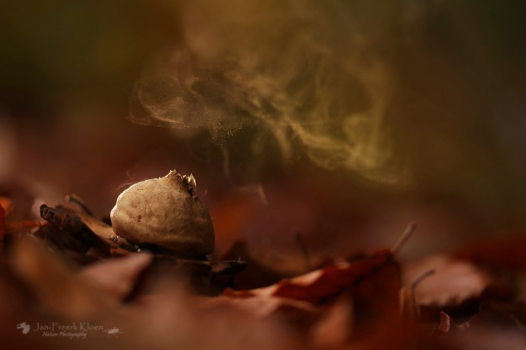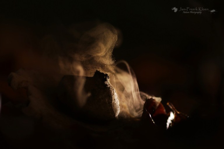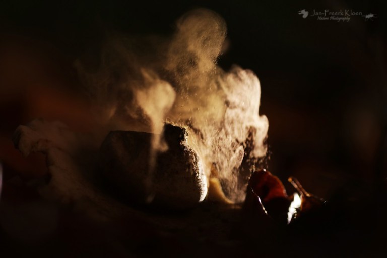 Vijf jaar geleden filmde ik dit spektakel al eens, wel met een minder mooie camera. De bewegende impressie van de rokende paddenstoelen zie je hieronder: