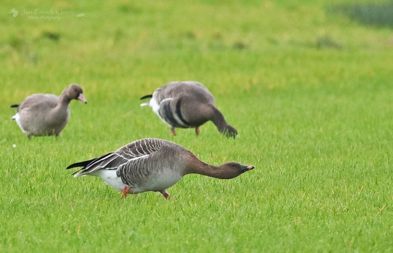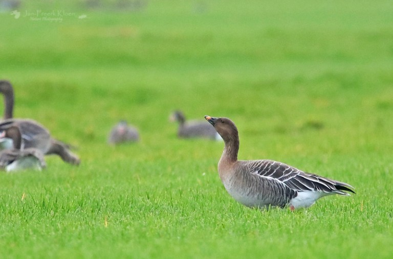 Een waterral laat zich kort zien aan de rand van een rietkraag in de Wageningse Bovenpolder.Een roodborstje in de Amerongse Bovenpolder.Een grote zaagbek in de slotgracht van Kasteel Amersfoort.Een groep met grauwe ganzen (vooraan) en kolganzen (achtergrond) in het Binnenveld bij Wageningen.Vrij zeldzaam in de omgeving van Wageningen: de toendrarietgans. In de groep met kol- en grauwe ganzen in het Binnenveld.