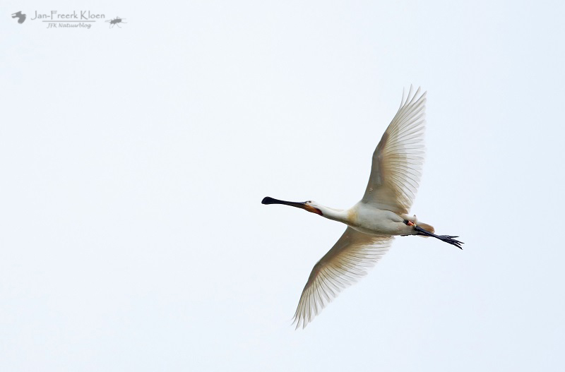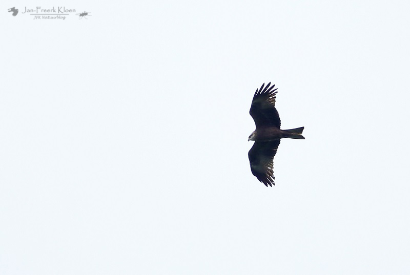 Ook tijdens de rest van de wandeling deden we nog leuke waarnemingen. De lucht was constant vol roofvogels en ooievaars. Zeker die laatste waren bijna constant wel ergens te zien. In een weiland waar we langsliepen zaten er al zeker vijftien en gedurende de dag bleven ze maar overvliegen. Ook de buizerden waren goed vertegenwoordigd. Twee keer vloog ook een boomvalk over. De leukste roofvogel had ik nog bijna gemist. Hij was ons al bijna voorbij toen ik de zwarte wouw ontdekte, niet heel hoog en bijna recht boven ons. Hij gleed hard omlaag, maar kwam even later al cirkelend nog een keer mooi in beeld.