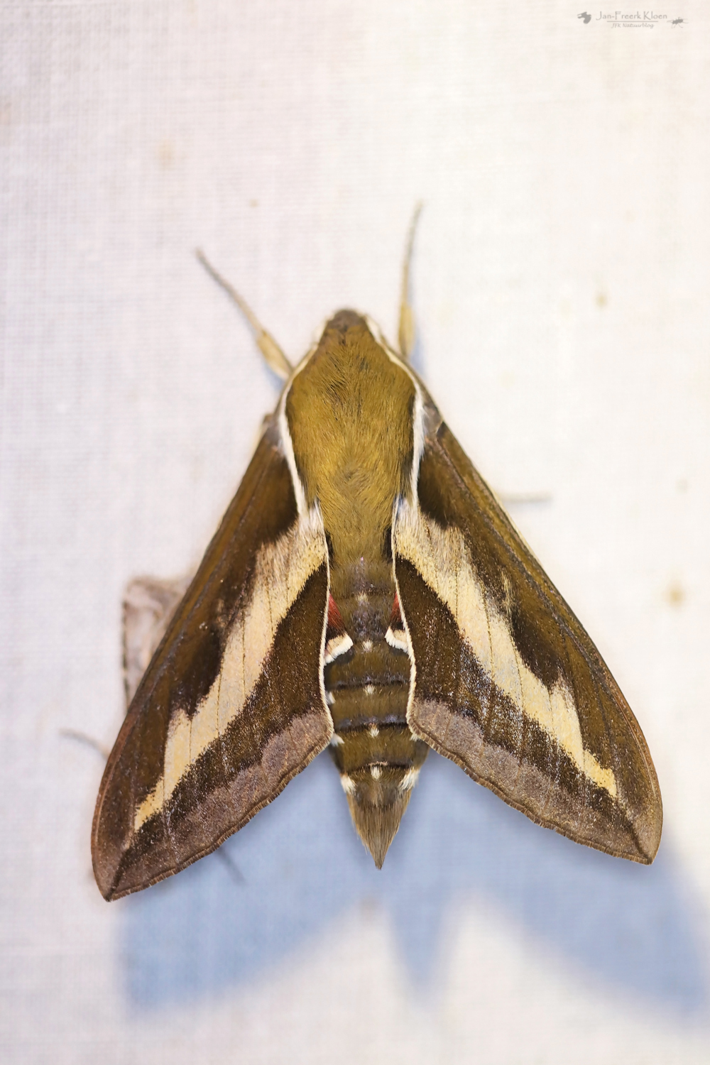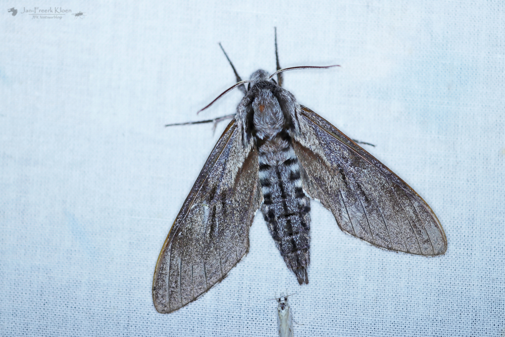 Ik heb wel foto’s van een paar leuke nachtvlinders later die nacht. Toen we terug kwamen op het kampterrein stond de nachtvlinderlamp van zustervereniging JNM aan, die daar ook een kamp had. De leukste soort was de walstropijlstaart, een grote en redelijk bonte nachtvlinder. Om half drie had ik zo langzamerhand tijd om naar bed te gaan. Met een hele lange dag in het vooruitzicht.