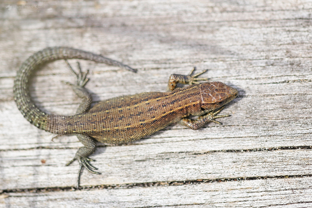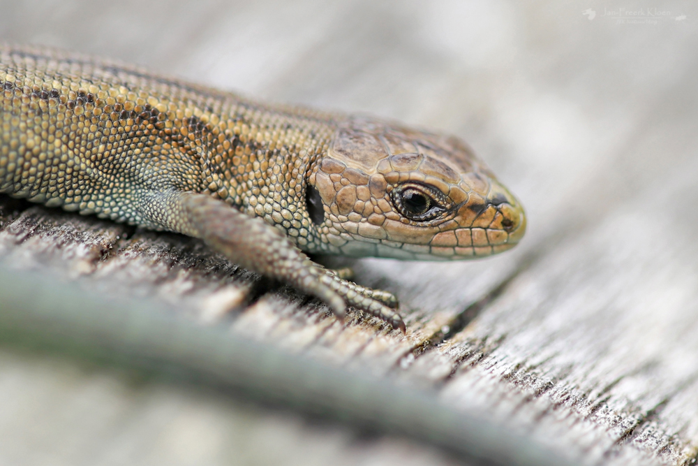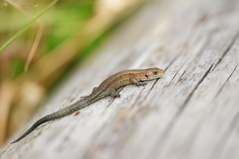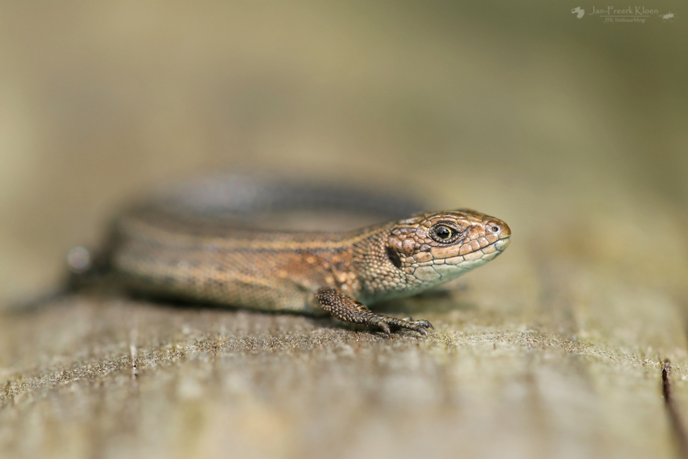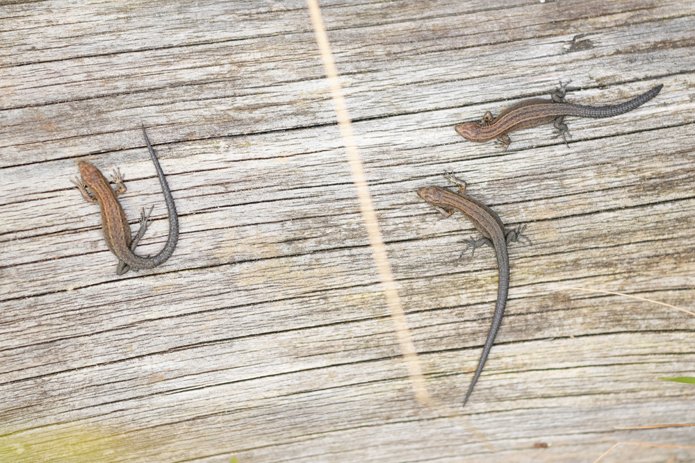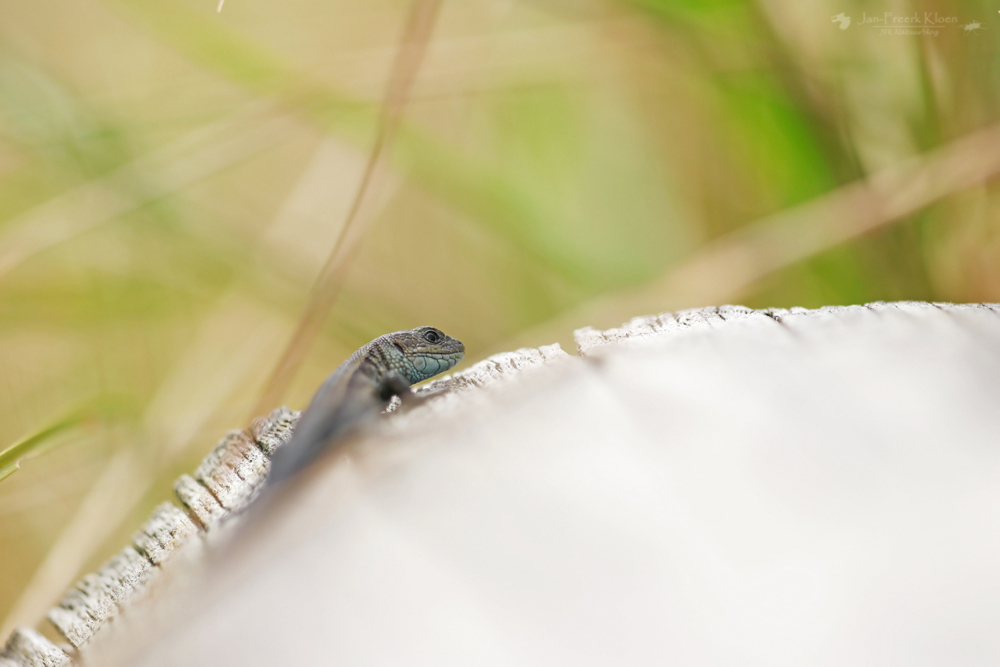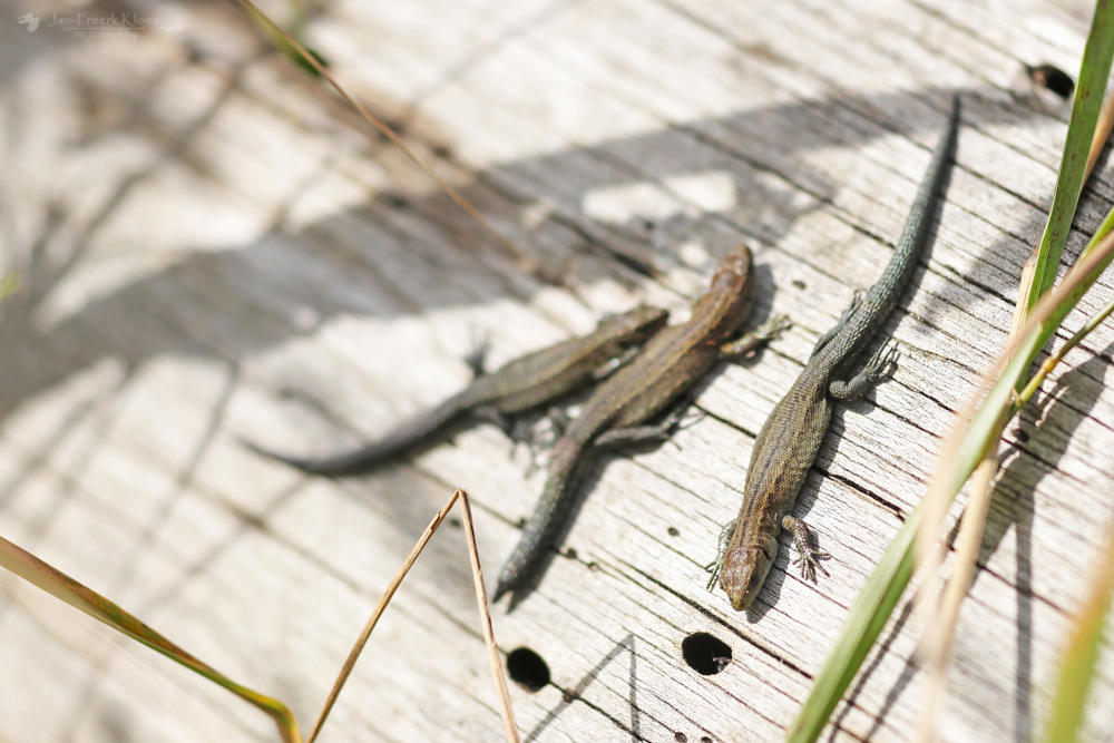 De tweede helft van de middag ging ik mee met de reptielenexcursie van Jesper en David (RAVON). Terschelling is nou niet echt een reptielenwalhalla en midden overdag reptielen vinden is toch al erg lastig, maar het viel me nog niet tegen. Midden op de hei vonden we eigenlijk niks, maar aan de rand lag een boomstam waar net een heel nest levendbarende hagedissen geboren was. Ook hingen er nog wat volwassen hagedissen in de buurt rond. Deze waren voor iedereen erg leuk te zien. Zeker toen de zon even achter een wolk ging lieten ze zich fantastisch bekijken terwijl ze genoten van de warmte die de stam nog vasthield.