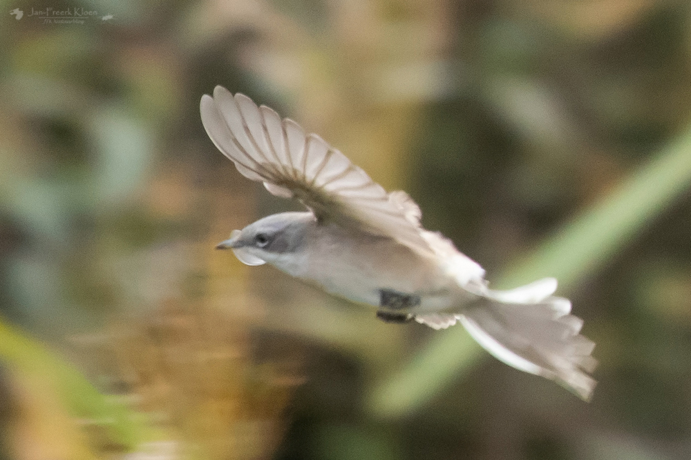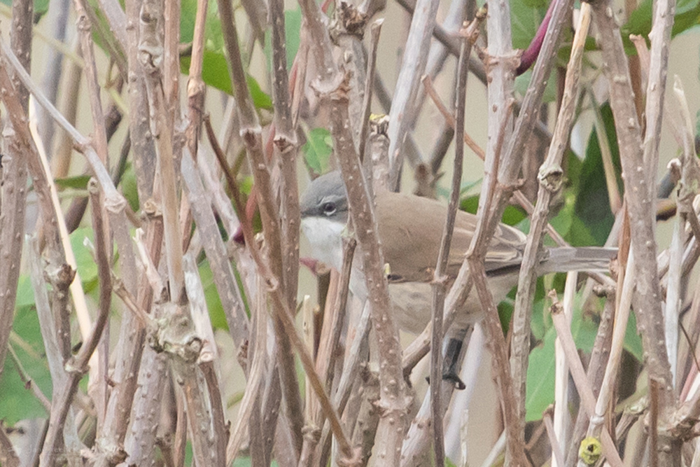 De dag was nog niet om. Terwijl we door de duinen terugliepen naar de fietsen was ik alert op kleine zangvogeltjes, in de hoop er een verdwaalde zeldzaamheid tussen te ontdekken. Dat resulteerde in een mogelijke bladkoning, maar deze liet zich precies één keer horen en niet zien. Te weinig om er zeker van te zijn. Daarna hoorde ik wat tikken in de bosjes, wat van een braamsluiper bleek te komen. Gezien de witte buitenste staartpennen, de diepbruine kleur op de rug, een vage overgang van de witte wang naar de beige borst en het feit dat hij in oktober in Noord-Nederland zit, maakt het waarschijnlijk dat het één van de zeer zeldzame oostelijke ondersoorten (Siberische of vale braamsluiper) is. Omdat er nog een hoop onduidelijk is over de kenmerken van deze ondersoorten is het beest voorlopig nog niet op naam te brengen. De foto’s zijn niet mooi, maar hij staat er redelijk duidelijk op.