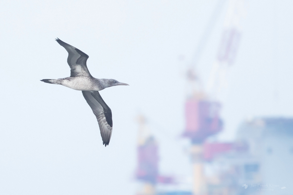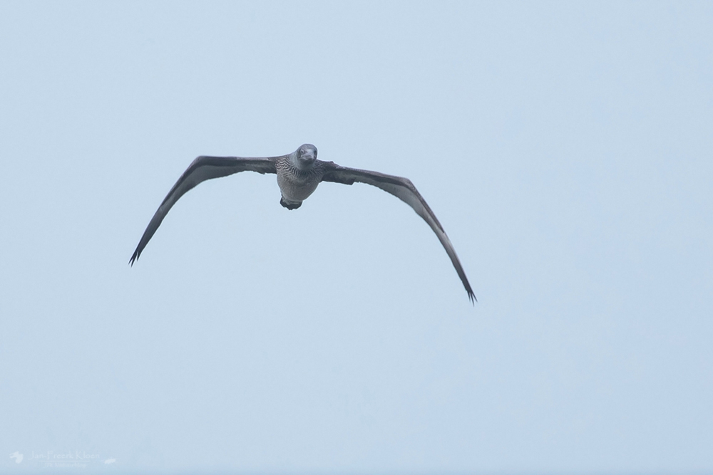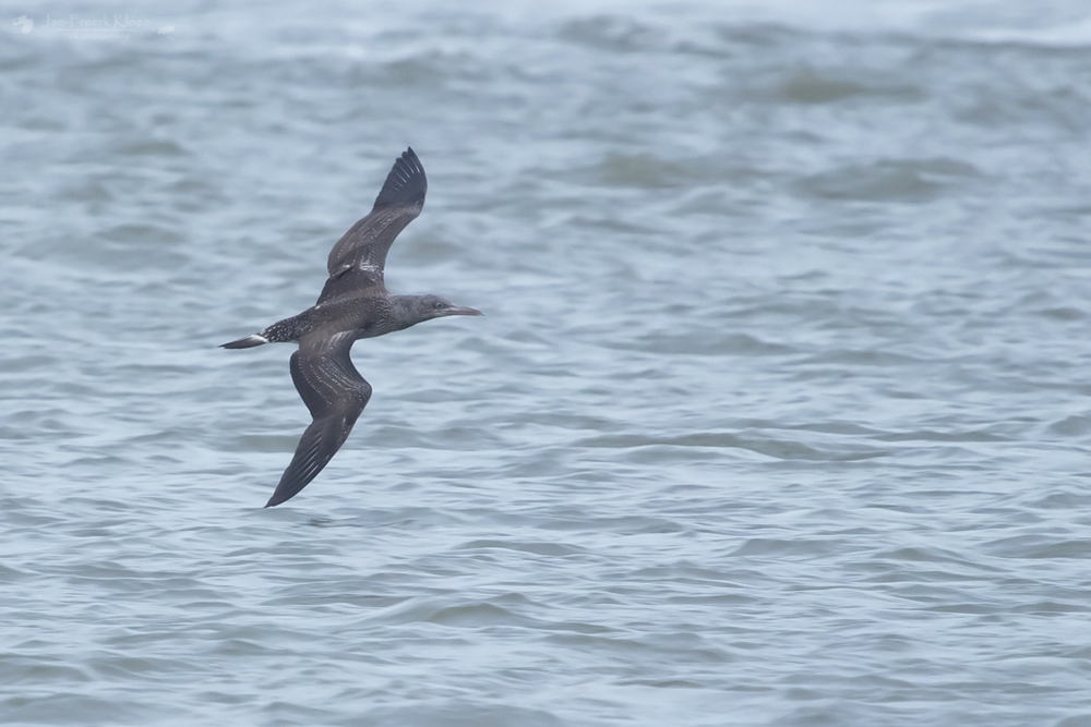De grote klapper kwam op de terugweg. Een beetje in gedachten verzonken sjokte ik door het zand. Toen ik naar rechts keek vloog er ineens een jonge Jan-van-gent over de branding, op amper dertig meter afstand. Hij vloog me al voorbij, maar mijn ouders liepen weer eens voor mij. Ik floot hard en schel om ze te waarschuwen. Alsof de Jan-van-gent het hoorde draaide hij een rondje, keerde om en kwam pal voor me terug vliegen. Langs de rand van het strand vloog hij door richting de oostpunt.