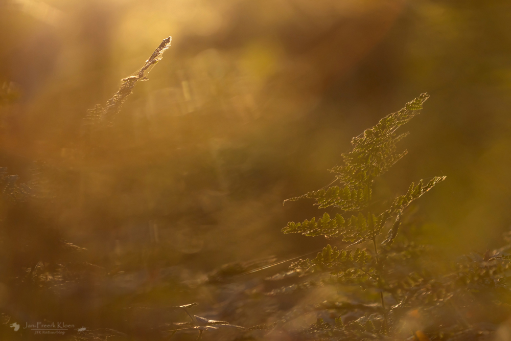 Toch is het belangrijk om je omgeving niet uit het oog te verliezen. Ook die is mooi! Een paar honderd meter van de grote weg in een hondenuitlaatbos kan je je al helemaal verliezen. Ga door je knieën en er gaat een deur open naar een magische wereld. Het laatste uur voor zonsondergang geeft het bos nog wat extra sfeer.