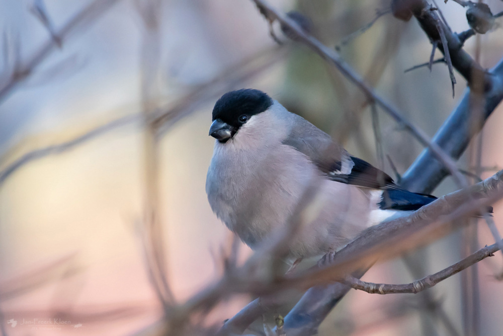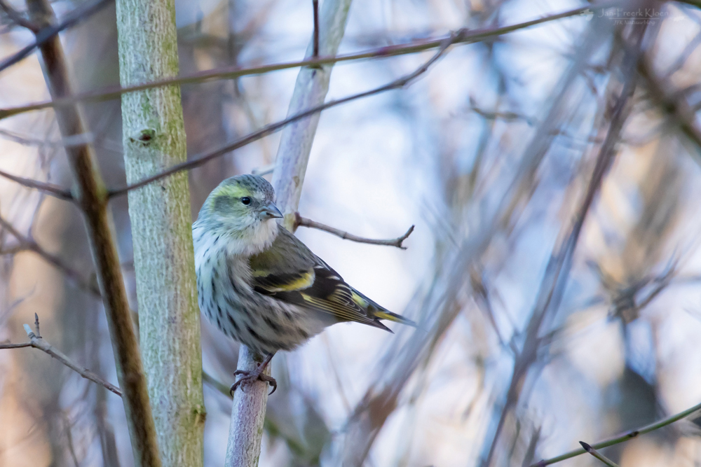 Op een koude ochtend met een straffe wind lieten de vogels zich vlak bij huis al prachtig zien. Aan de rand van het park hielden drie goudvinken en een stuk of tien sijsjes zich op. In het zwakke zonlicht van de ijzige ochtend kon ik een paar leuke plaatjes maken.