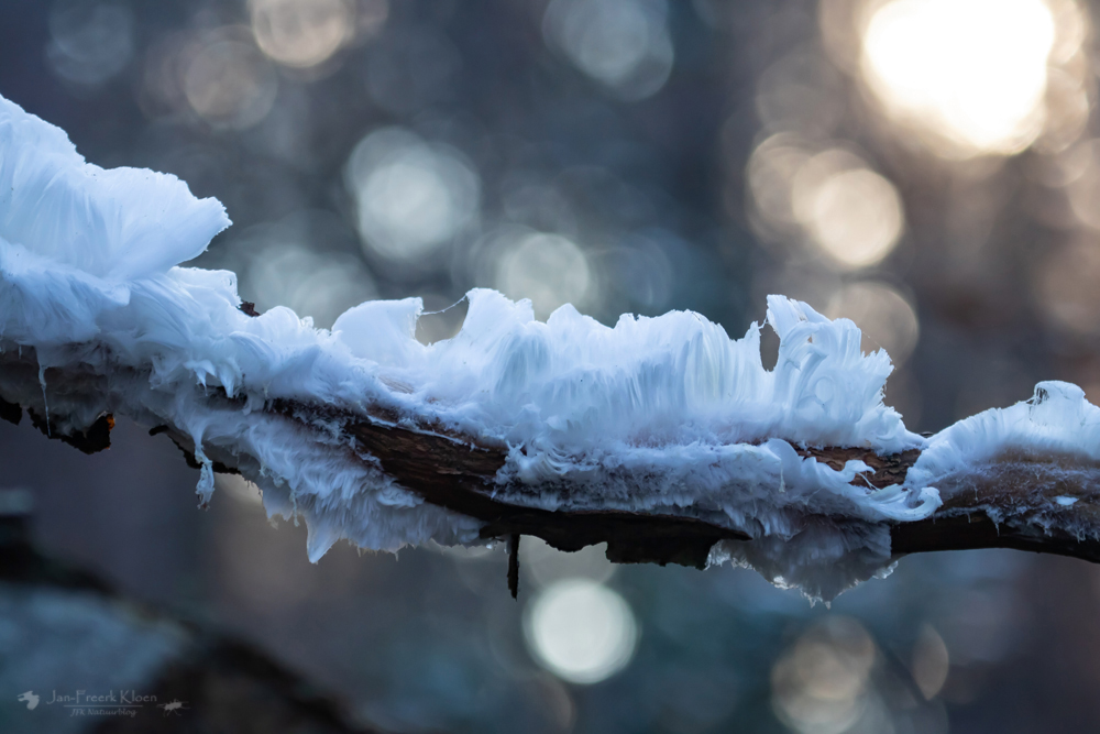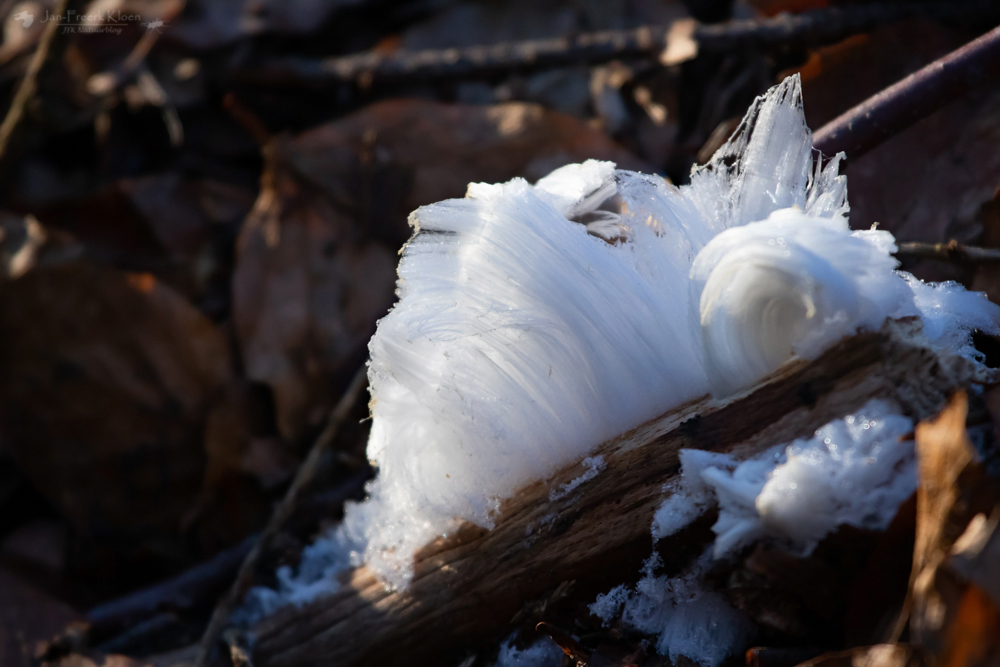 Sfeerplaatjes van het ijshaar, de ‘baard van Koning Winter’. — Klik op een foto om de serie te openen en gebruik de pijltjes naar rechts om de foto’s groter te zien.