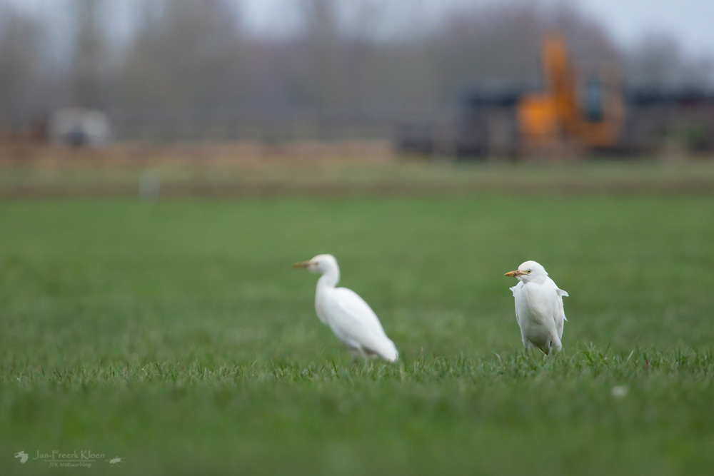 Na deze twee twitches werd het tijd voor een stukje door een natuurgebied lopen, maar niet geheel toevallig kwamen we langs een plek waar drie koereigers gemeld waren, aan de rand van de Dordtse Biesbosch.
