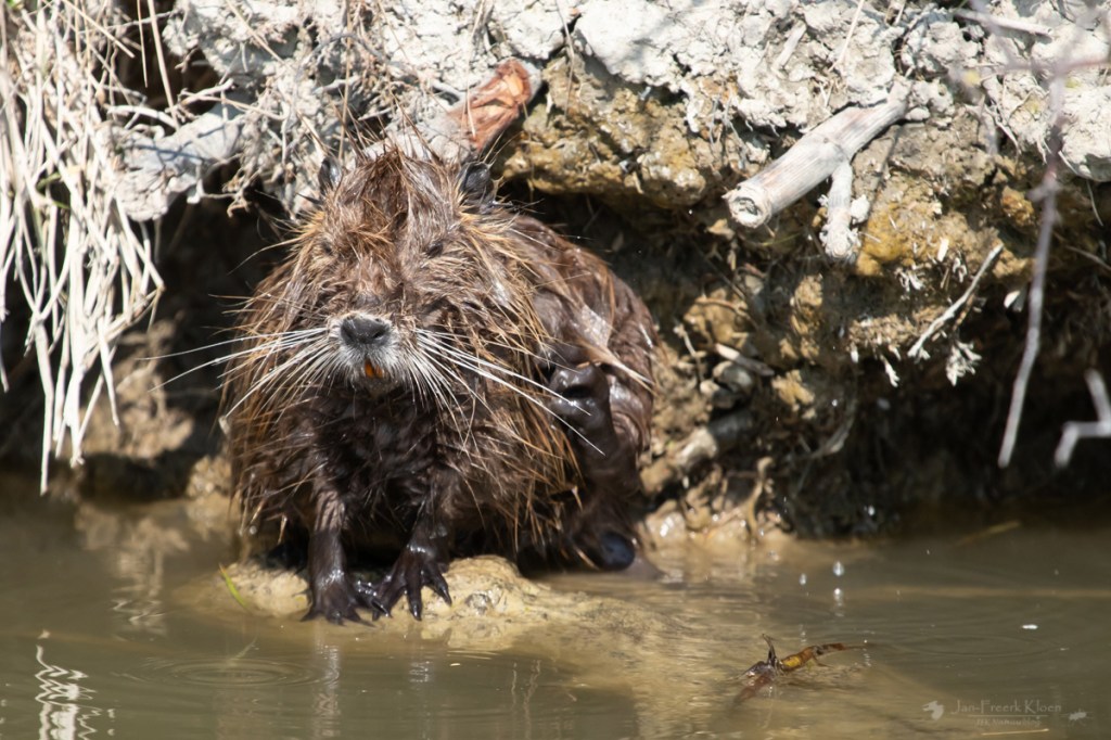 Op 7 maart gingen we de Camargue verkennen. Het eerste wat al snel buiten het dorp opviel was de beverrattenplaag. Ook midden overdag liepen ze in kleine groepjes overal te grazen. Op een rustig plekje zagen we er een paar rustig aan de waterkant zitten. Ze lieten zich leuk bekijken, zelfs van heel dichtbij.