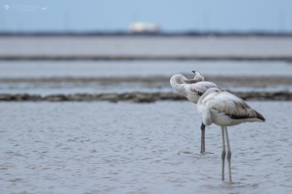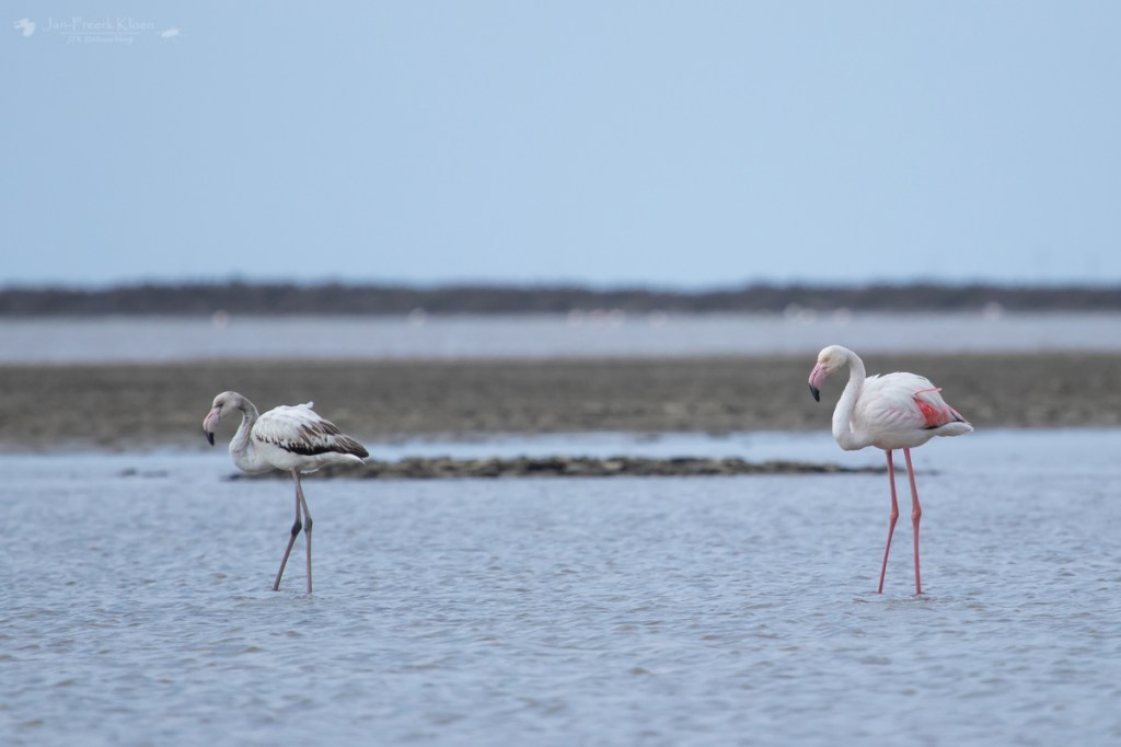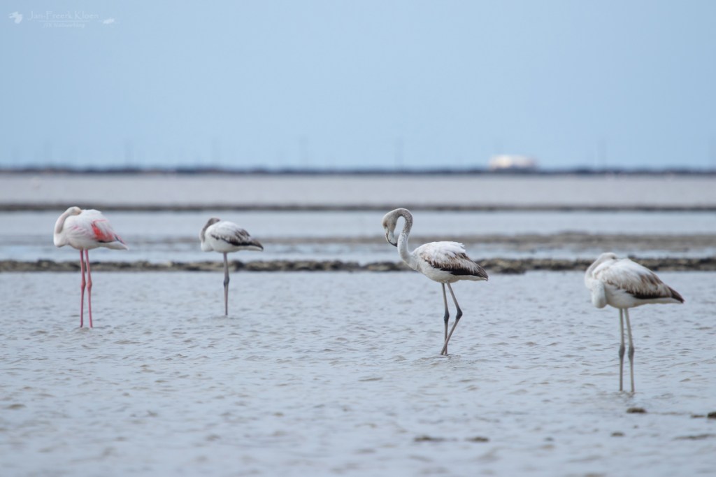 Op de terugweg stopten we bij een ondiepe plas waar enkele tientallen flamingo’s rondliepen. Op stevig tempo maaiden ze door het water en ze lieten zich van een afstandje maar toch heel mooi bekijken.