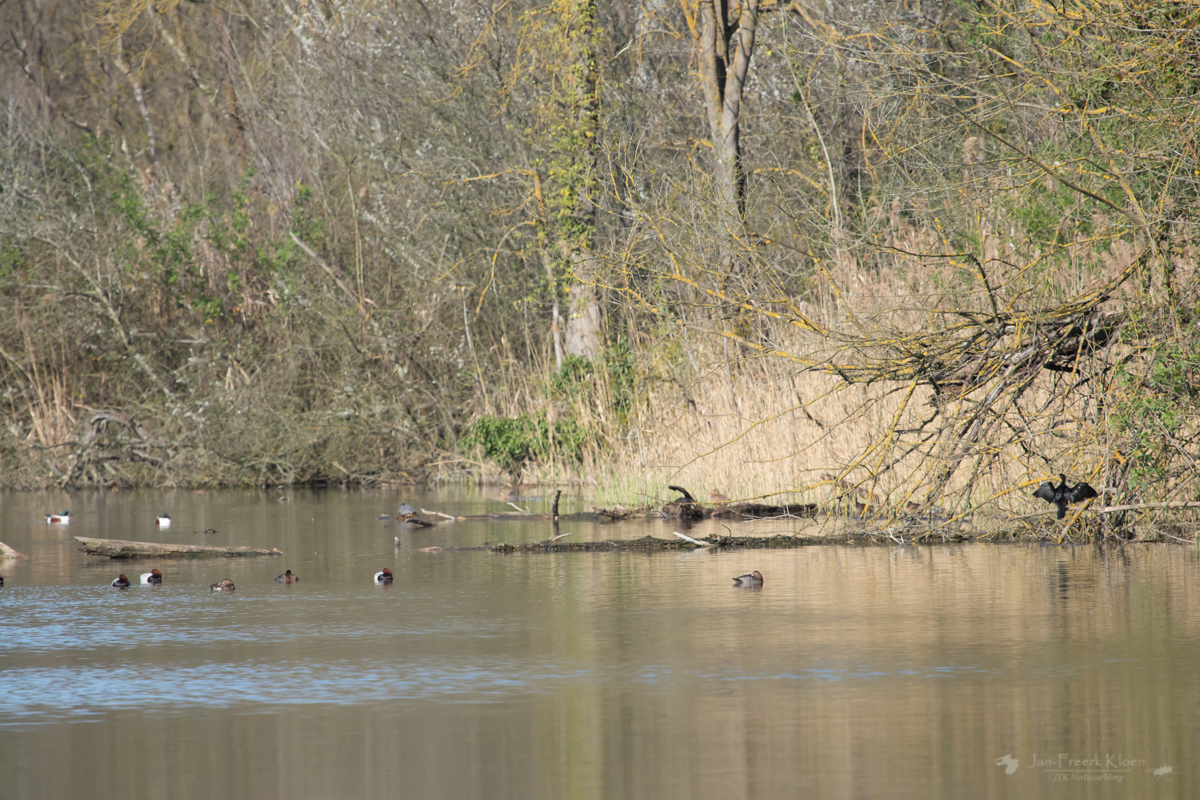 Een zoekplaatje met tafeleenden, slobeenden, een dwergaalscholver, een beverrat en een lettersierschildpad. Zie jij ze allemaal?