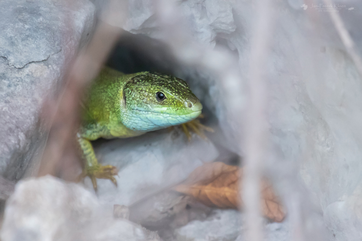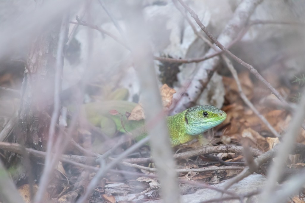 Op 4 april hadden we inmiddels een dagje in Venetië rondgekeken en gingen we verder, naar het Kroatische eiland Krk. Onderweg stopten we nog in een Italiaans natuurgebied: Laghi di Doberdò. Tegen de Sloveense grens. Al snel zagen we een smaragdhagedis, inmiddels de oostelijke soort. Daarna trok het wolkendek dicht en zagen we vrijwel niks meer. Wel hoorden we nog een grijskopspecht, een leuke soort die we nog niet eerder tegenkwamen. Op de terugweg naar de auto stuitten we op een hop die voor ons op het pad liep. Van een afstandje liet hij zich leuk zien, maar steeds als we te dichtbij kwamen vloog hij een hoekje om. Als we daar dan gingen kijken was hij weg, maar troffen we hem even later weer gewoon op het pad aan. Dat spelletje herhaalde zich een paar keer tot we het opgaven.
