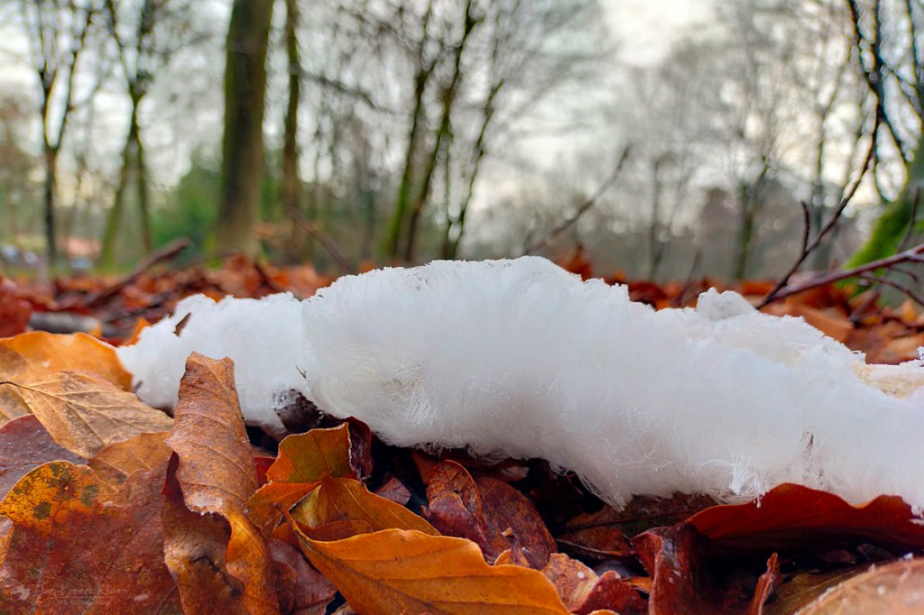 Een koude ochtend. De Veluwe ontwaakt langzaam en in het eerste licht zie ik edelherten de weg over lopen en ontdek ik dat Koning Winter ijshaar op de beukentakken heeft achtergelaten. De kruisbekken en kuifmezen laten van zicht horen. Een prachtige winterse ochtend.