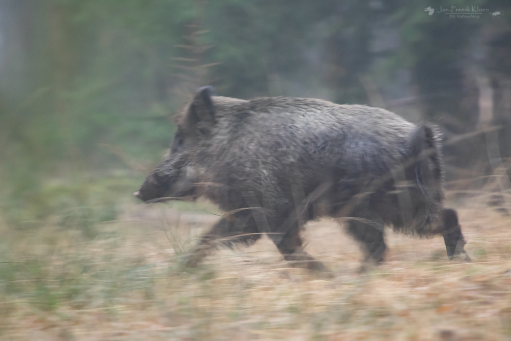 Wolven zoeken is niet zo makkelijk met zicht van hooguit een meter of vijftig, maar ik hoop een wolf te kunnen verrassen. Hij kan mij immers ook niet zien. Het zou toch een keer moeten lukken met zoveel uren in het veld?