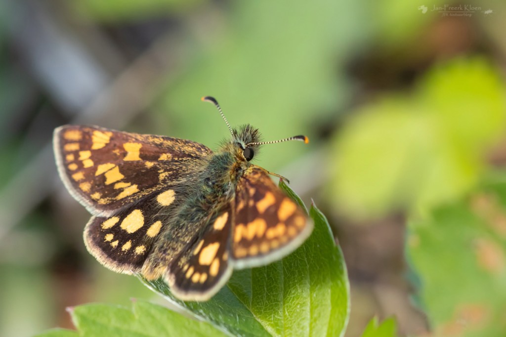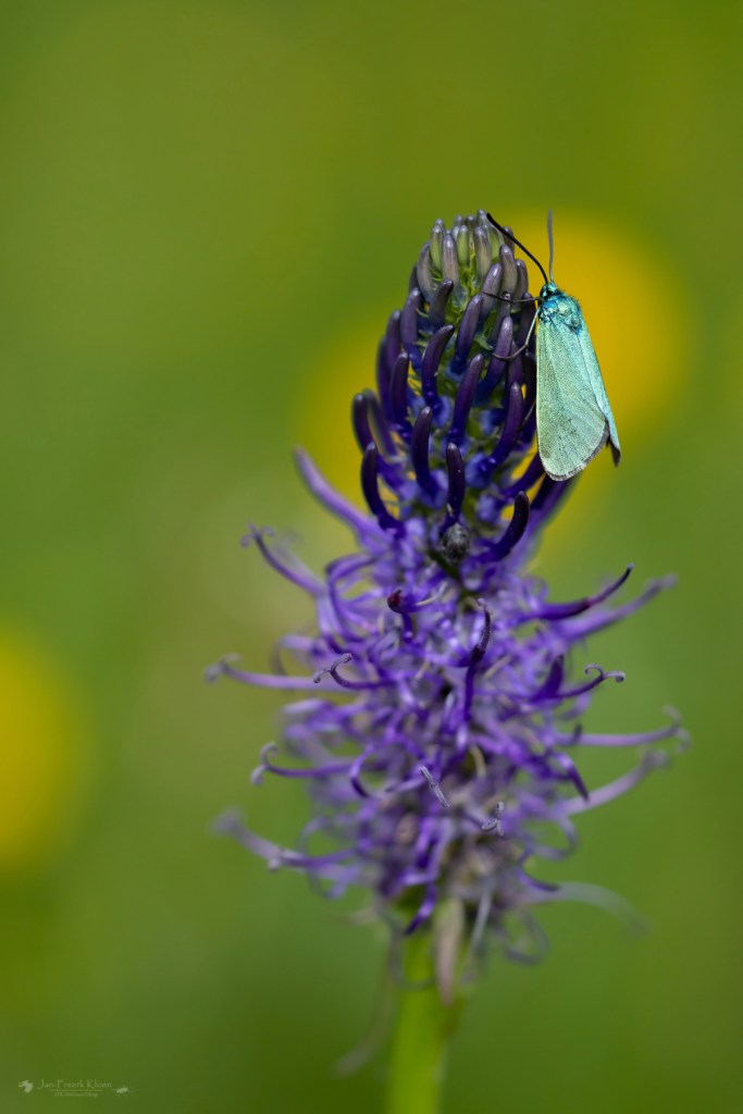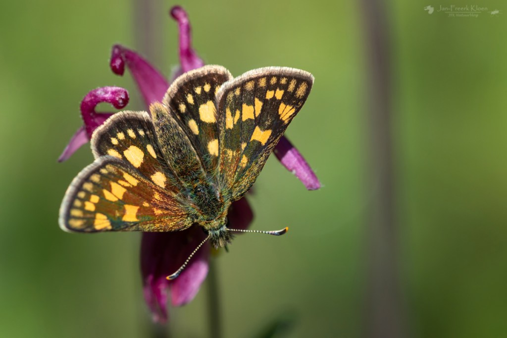 Op 26 mei bleek dat we niet in het mooiste stukje Eifel terecht waren gekomen. Of we wisten de plekjes niet. We liepen wat rond door een niet onaardig uitziend beekdal, maar de aantallen vlinders waren minimaal. Ook wel omdat we voor veel soorten tussen de eerste en tweede generatie in zaten. We zagen een enkel groot geaderd witje en qua spannende soorten was het daarmee wel gedaan. Een vrouwtje oranjetipje liet zich in de schaduw mooi op de foto zetten, evenals een metaalvlindertje op een zwartblauwe rapunzel.